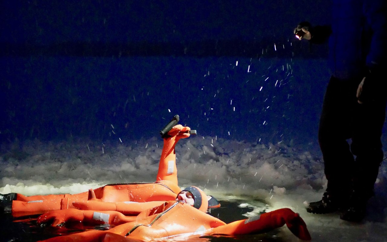 Du är iklädd en överlevnadsdräkt i väl dimensionerad neopren och glider sakta ned i det iskalla vattnet. Du svävar viktlöst i vattnet och ovanför dig siktas stjärnorna på den mörka himlen, kanske även norrsken om natthimlen är mörk.