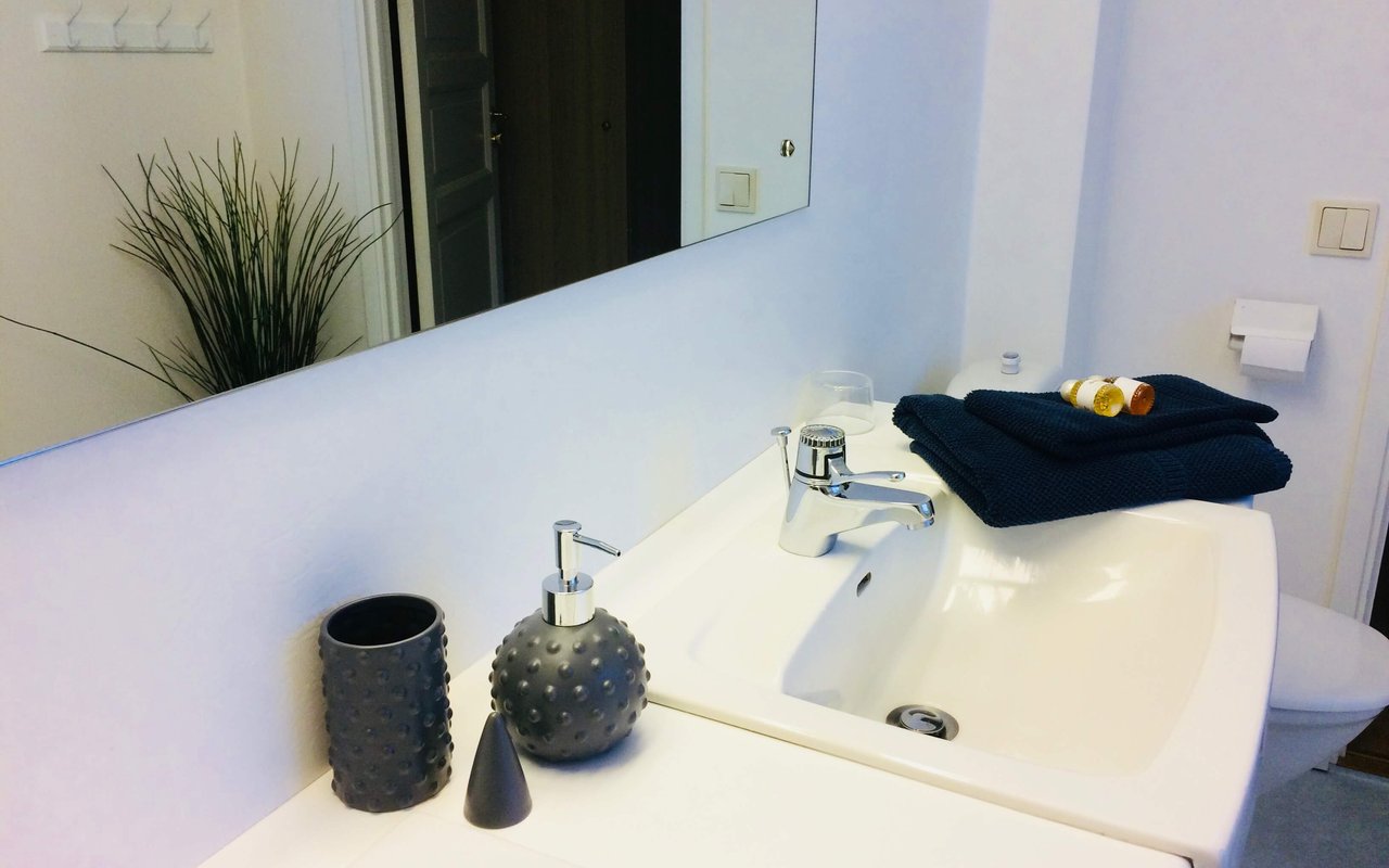 Stort privat badrum med dubbla duschar