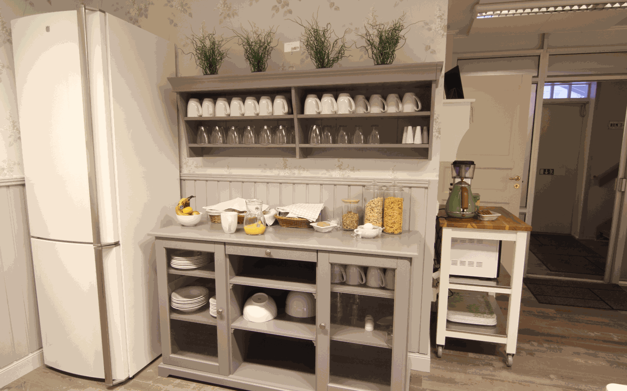 Vattenkokare för te/kaffe i rummet.