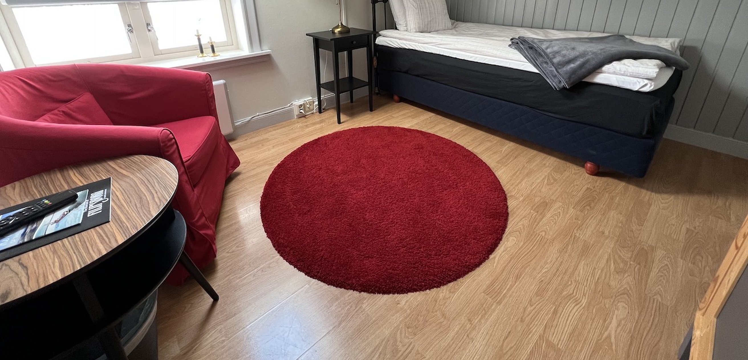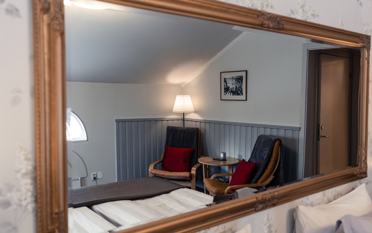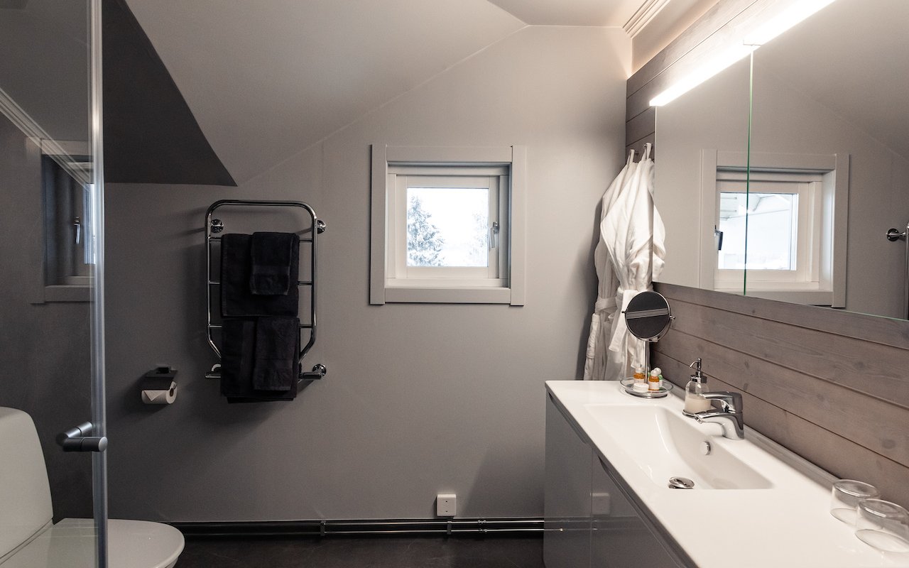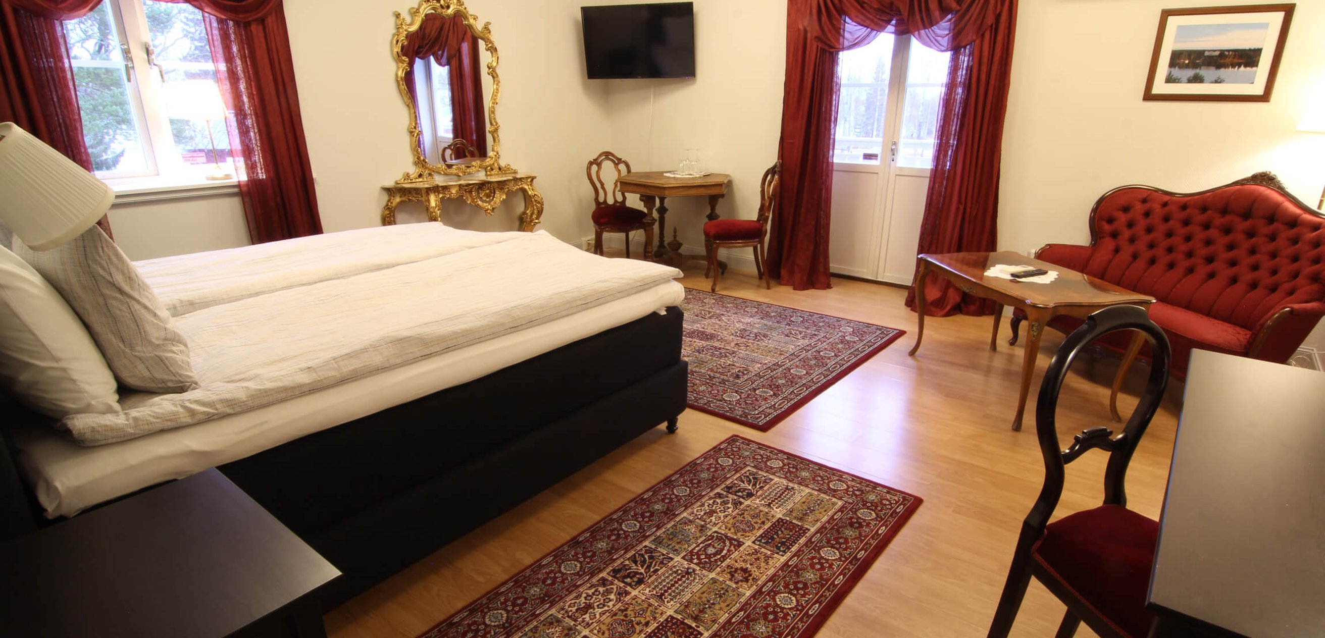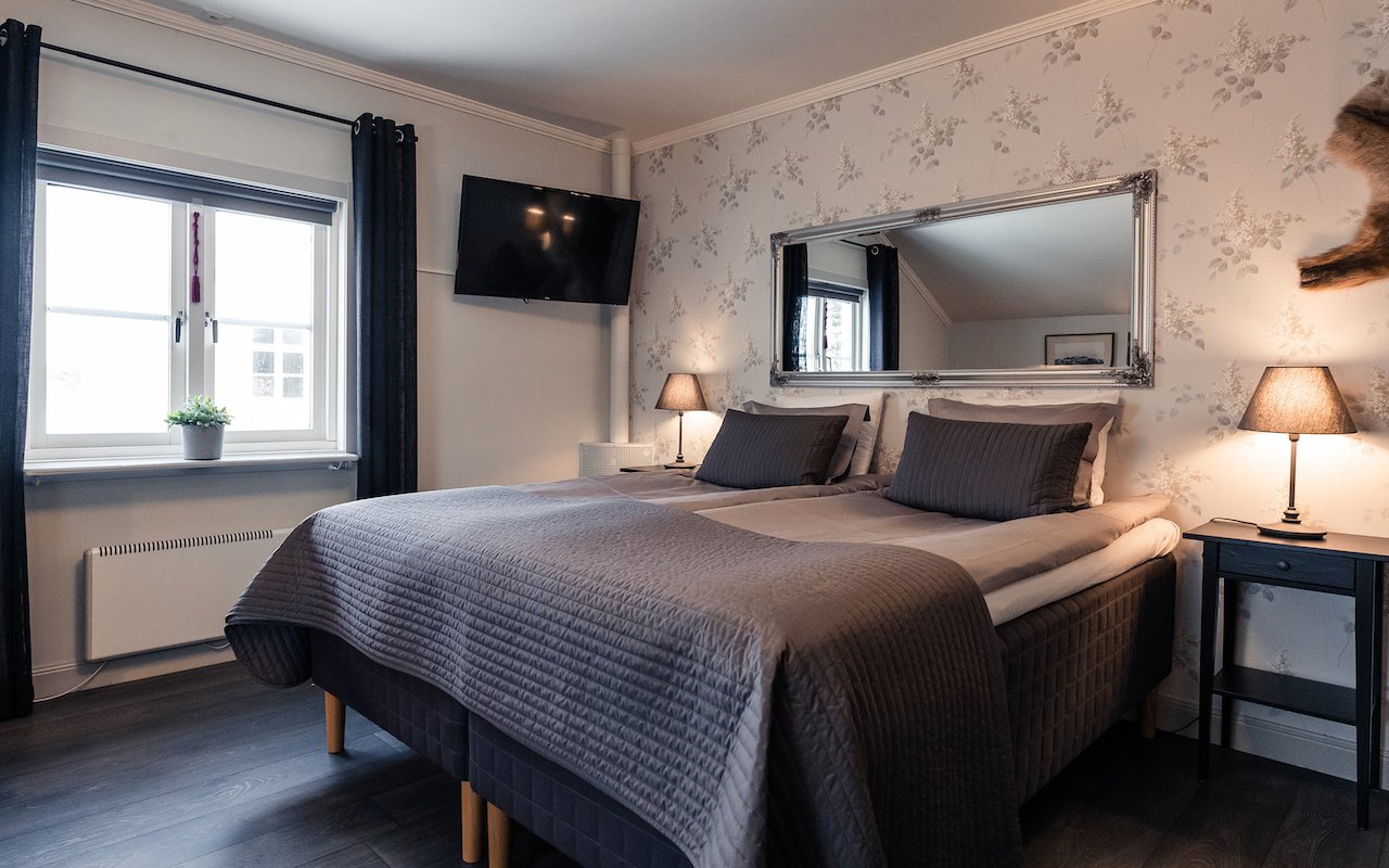 We have four of the large DeLuxe double rooms. Beautiful views of the Kalix river and golf course as well as the clubhouse and driving range. There is a sauna and also an Aurora balcony there is a chance to see the northern lights during seasons for dark skies. A beautiful sunset can be seen from the balcony. Extra bed can be booked for the rooms.