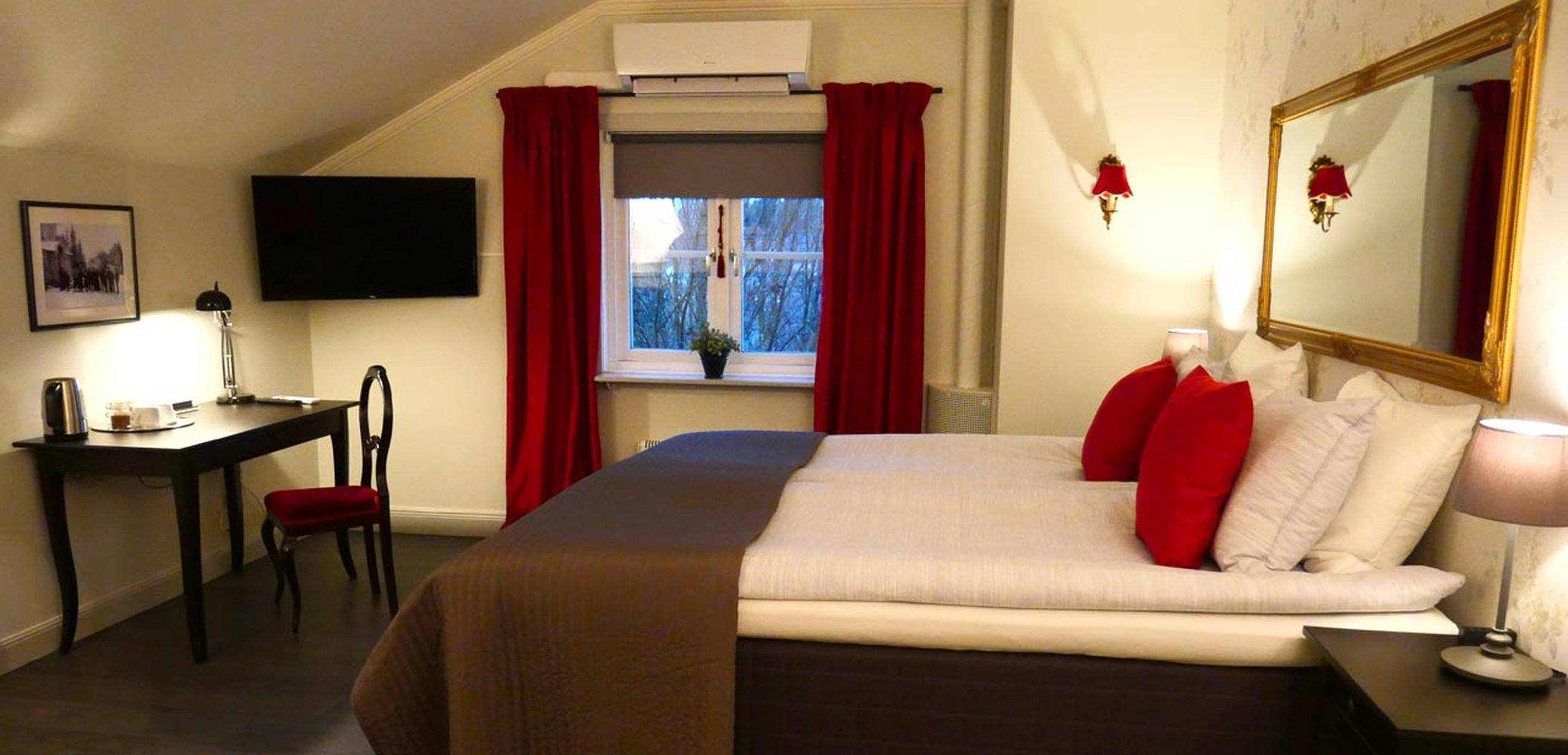 If the four rooms are booked by a group, you will have the entire upper floor as a private area, including a kitchen. Perfect for private groups or team-building!  Conference rooms are available in the same building. Totally we have four conference rooms at Filipsborg for 2-55 participants.